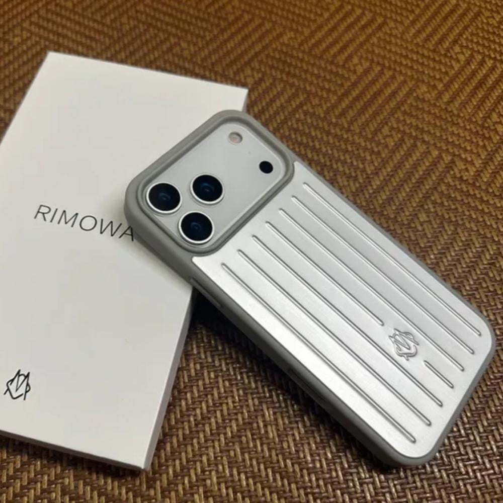 هذا كفر حماية فاخر لهاتف آيفون يتميز بتصميم أنيق مستوحى من نمط RIMOWA الشهير، حيث يحتوي على خطوط طولية بارزة تعزز من قبضة اليد وتضفي لمسة عصرية فاخرة.